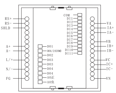 ◆模擬量輸入/漏電互感器為可選項,當沒選擇該項時,端子號21-22不用接線