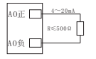 ◆模擬量輸出的接線端子與繼電器輸出DO5復用一對端子,不能同時選擇兩個功能