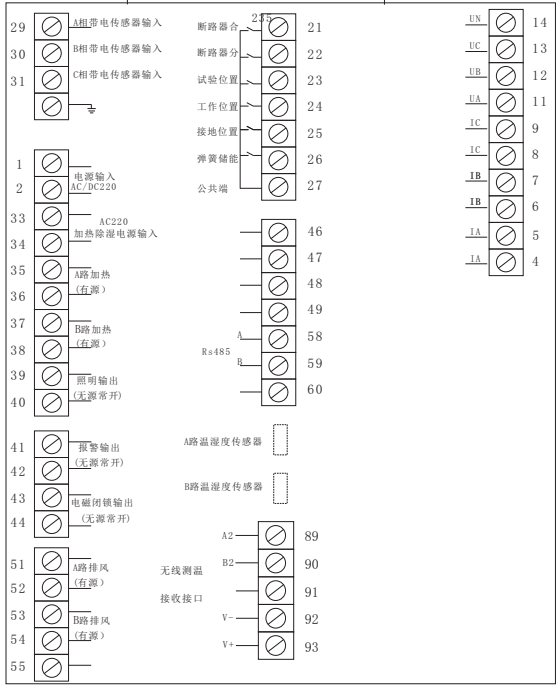 斷路器位置指示:無源觸點輸入,工作位置觸點閉合時,紅色垂直模擬條發(fā)光,指示斷路器處于工作位置,試驗位置觸點閉合時,綠色水平模擬條發(fā)光,指示斷路器處于試驗位置 |